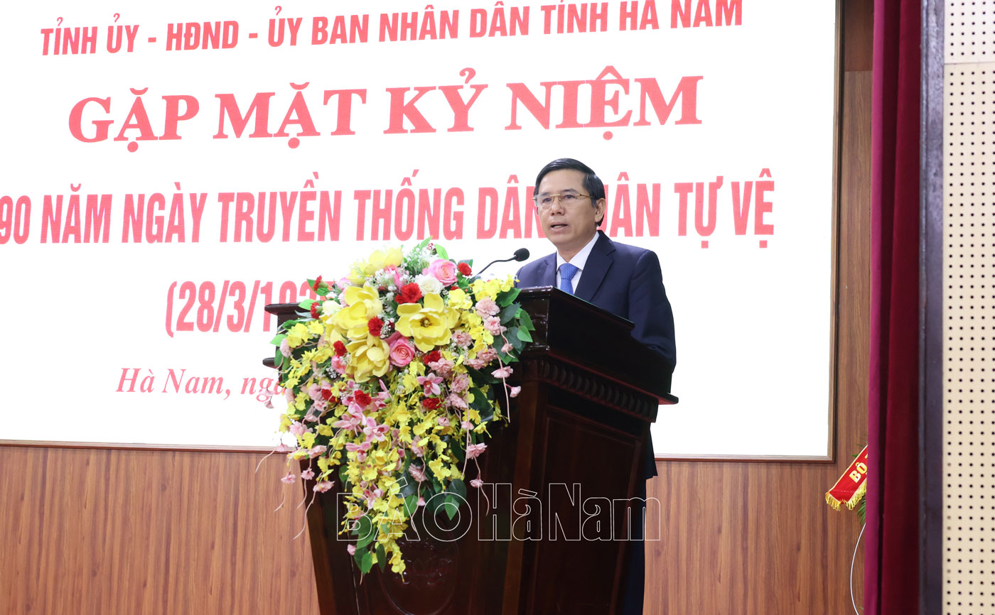 Phát biểu tại buổi gặp mặt, đồng chí Phó Chủ tịch UBND tỉnh Trần Xuân Dưỡng nhấn mạnh: ôn lại truyền thống và những chiến công vẻ vang trong xây dựng, chiến đấu, trưởng thành của lực lượng DQTV, góp phần khơi dậy trong CBCS LLVT và nhân dân về niềm tự hào, tự tôn dân tộc, nâng cao lòng yêu nước, yêu chủ nghĩa xã hội, ý chí quật cường, vượt qua mọi khó khăn, thử thách, ra sức xây dựng nền quốc phòng toàn dân vững mạnh, xây dựng LLVT “cách mạng, chính quy, tinh nhuệ, hiện đại”; xây dựng lực lượng DQTV vững mạnh rộng khắp, nâng cao chất lượng tổng hợp, khả năng SSCĐ, đáp ứng yêu cầu nhiệm vụ trong giai đoạn mới, góp phần tích cực vào sự nghiệp xây dựng và bảo vệ vững chắc Tổ quốc Việt Nam xã hội chủ nghĩa, xây dựng tỉnh Hà Nam ngày càng giàu đẹp, văn minh.