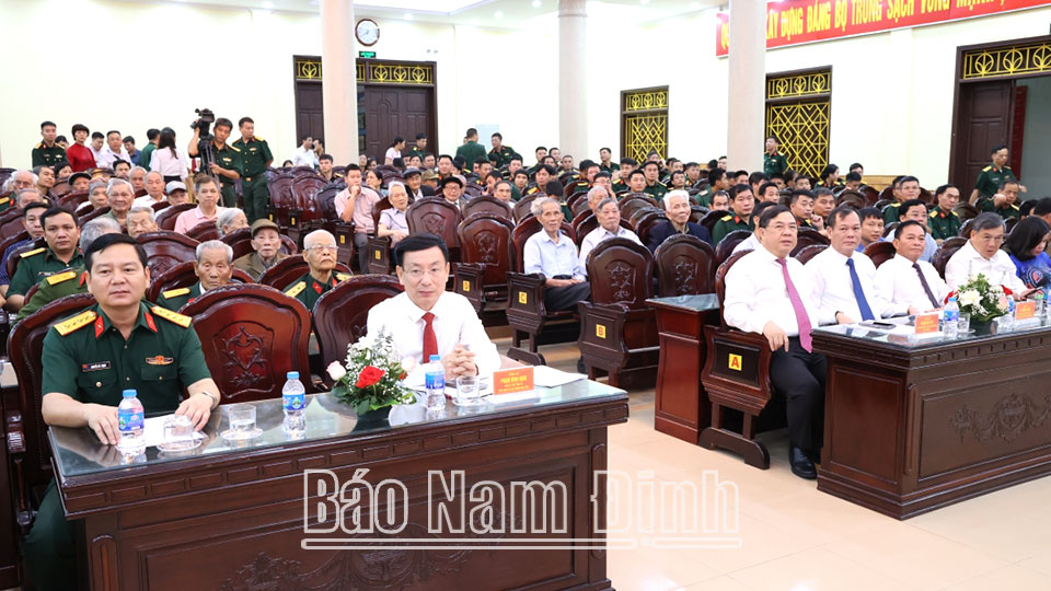 Phát biểu tại buổi gặp mặt, đồng chí Chủ tịch UBND tỉnh Phạm Đình Nghị nhấn mạnh: Để tiếp tục phát huy tinh thần Chiến thắng Điện Biên Phủ, kế thừa và phát huy những thành quả đạt được trong công cuộc đổi mới, cấp uỷ, chính quyền, các đơn vị và địa phương tiếp tục giữ vững và phát huy tinh thần chiến thắng Điện Biên Phủ, Hào khí Đông A, ý chí tự lực, tự cường, đoàn kết, đồng lòng xây dựng quê hương Nam Định ngày càng giàu đẹp, văn minh. Thực hiện hiệu quả các chủ trương, đường lối của Đảng, chính sách, luật pháp của Nhà nước về phát triển kinh tế nhanh và bền vững. Các địa phương tiếp tục đẩy mạnh xây dựng nông thôn mới nâng cao, kiểu mẫu, đô thị văn minh, gắn với bảo tồn, phát huy các giá trị, bản sắc văn hoá truyền thống. Quan tâm, bảo đảm tốt an sinh xã hội; không ngừng nâng cao đời sống vật chất và tinh thần của nhân dân. Thường xuyên quan tâm, chăm sóc người có công với cách mạng, gia đình thương binh, liệt sĩ, người có hoàn cảnh khó khăn, đặc biệt trong dịp diễn ra kỷ niệm 70 năm chiến thắng Điện Biên Phủ, 80 năm Ngày thành lập QĐND Việt Nam, 35 năm Ngày hội Quốc phòng toàn dân và kỷ niệm những ngày lễ lớn của đất nước và địa phương. Gắn nhiệm vụ phát triển kinh tế - xã hội với củng cố, tăng cường tiềm lực quốc phòng, an ninh; giữ vững ổn định chính trị, trật tự an toàn xã hội trên địa bàn tỉnh. Tiếp tục đẩy mạnh thực hiện hiệu quả các phong thi đua yêu nước, phong trào thi đua quyết thắng, các cuộc vận động lớn của Trung ương và địa phương gắn với thực hiện thắng lợi Nghị quyết đại hội lần thứ XIII của Đảng; Nghị quyết Đại hội Đảng bộ tỉnh lần thứ XX, nhiệm kỳ 2020 - 2025 đã đề ra.