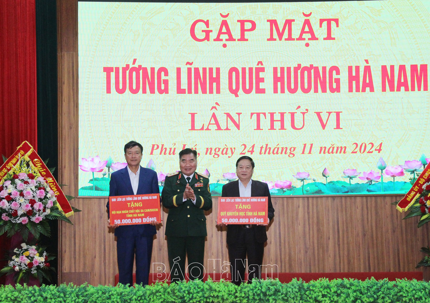 Nhân dịp này, Ban liên lạc tướng lĩnh quê hương Hà Nam đã trao quà tặng Quỹ Khuyến học tỉnh và Hội Nạn nhân chất độc da cam/dioxin tỉnh Hà Nam với số tiền 100 triệu đồng.