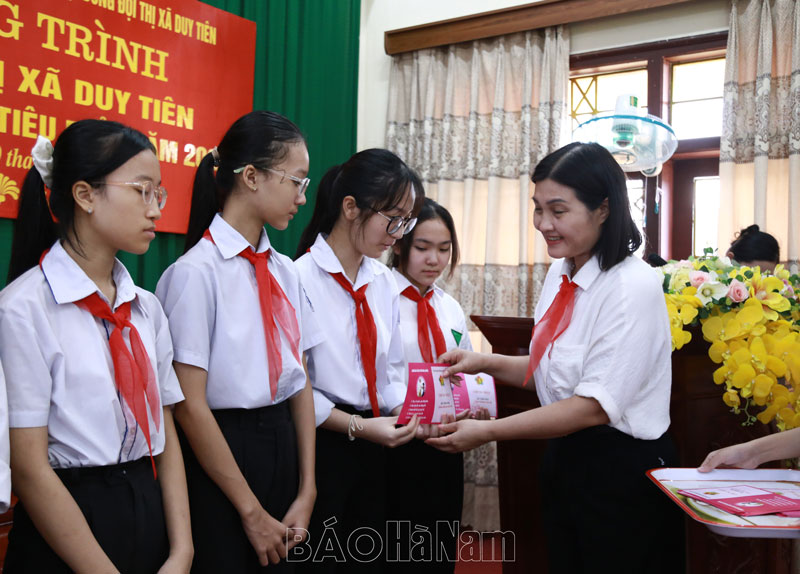 Lãnh đạo thị xã Duy Tiên trao giấy chứng nhận Cháu ngoan Bác Hồ cho các em đội viên, thiếu nhi tiêu biểu. Lãnh đạo thị xã Duy Tiên khen thưởng và trao giấy chứng nhận Cháu ngoan Bác Hồ cho các em đội viên, thiếu nhi tiêu biểu trên địa bàn thị xã.Lãnh đạo thị xã Duy Tiên chụp ảnh lưu niệm cùng 35 em thiếu nhi tiêu biểu năm 2024.