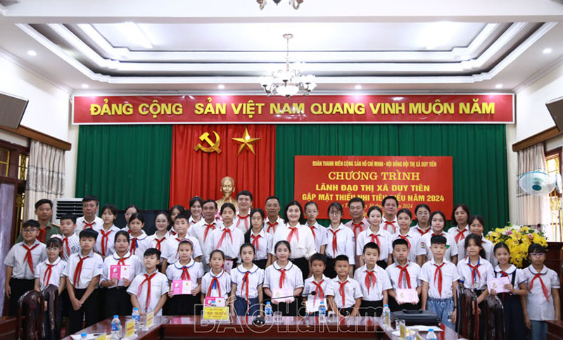Cũng trong dịp này, lãnh đạo thị xã Duy Tiên đã khen thưởng và trao giấy chứng nhận Cháu ngoan Bác Hồ cho 35 em học sinh có mặt trong buổi gặp mặt.