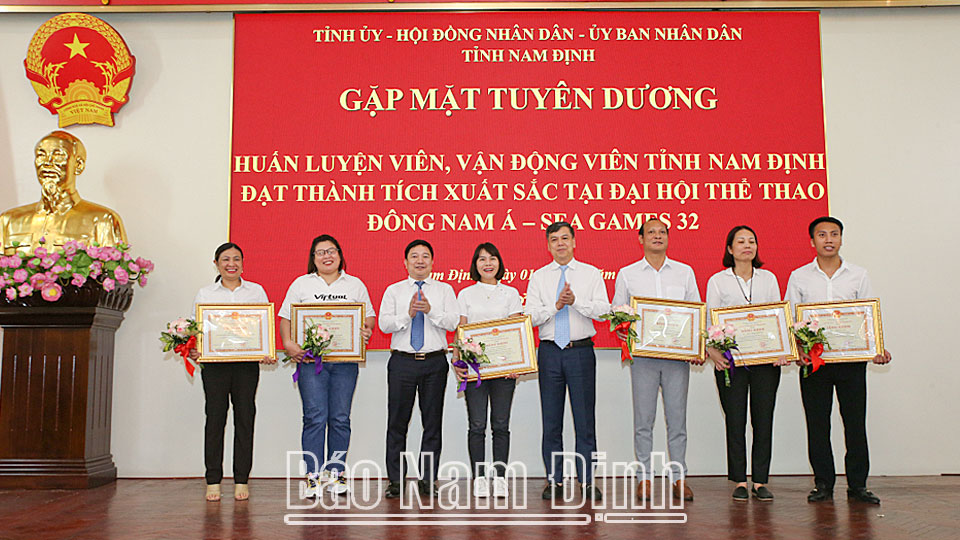 Ghi nhận những đóng góp của các HLV, VĐV, các đồng chí lãnh đạo tỉnh đã trao tặng Bằng khen của UBND tỉnh cho 13 cá nhân (6 VĐV, 7 HLV) đạt thành tích xuất sắc trong huấn luyện, thi đấu tại SEA Games 32./.