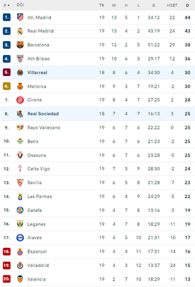 Bảng xếp hạng La Liga 2024-2025. Ảnh: bongdaplus.vn