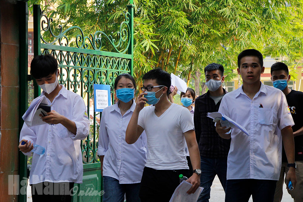 Bên cạnh đó, hầu hết phụ huynh đều ý thức được mức độ nguy hiểm của tình hình dịch bệnh Covid-19 nên ở các điểm thi gần như không có tình trạng phụ huynh tụ tập đông để chờ đón con. Đúng 7 giờ, các giám thị số 2 lên các phòng thi làm các thủ tục có liên quan và ổn định phòng thi. Đến 7 giờ 30 phút, đề thi chính thức được các giám thị số 1 phát cho các thí sinh.