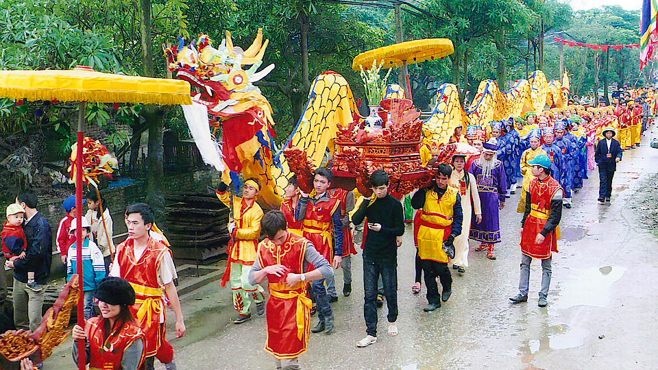 | Rước kiệu trong lễ hội Đền thờ Đức Thánh tổ nghề đúc làng Tống Xá, thị trấn Lâm đầu xuân. |