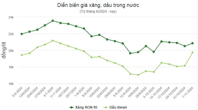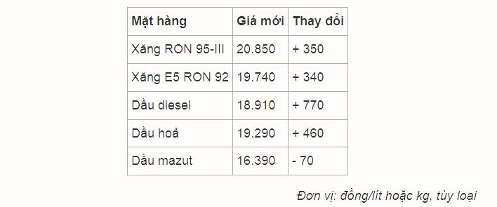 Giá xăng, dầu thay đổi như sau: