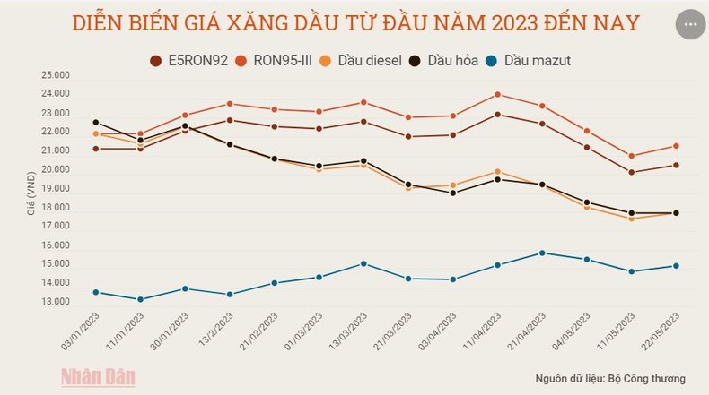 Việc trích lập, không chi sử dụng Quỹ Bình ổn giá xăng dầu đối với các mặt hàng xăng dầu áp dụng từ 15 giờ ngày 22/5.
