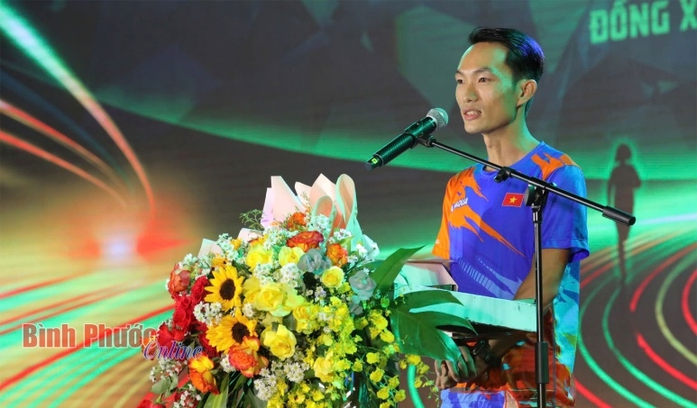 | “Ông hoàng marathon Việt Nam” Hoàng Nguyên Thanh phát biểu tại lễ khai mạc |