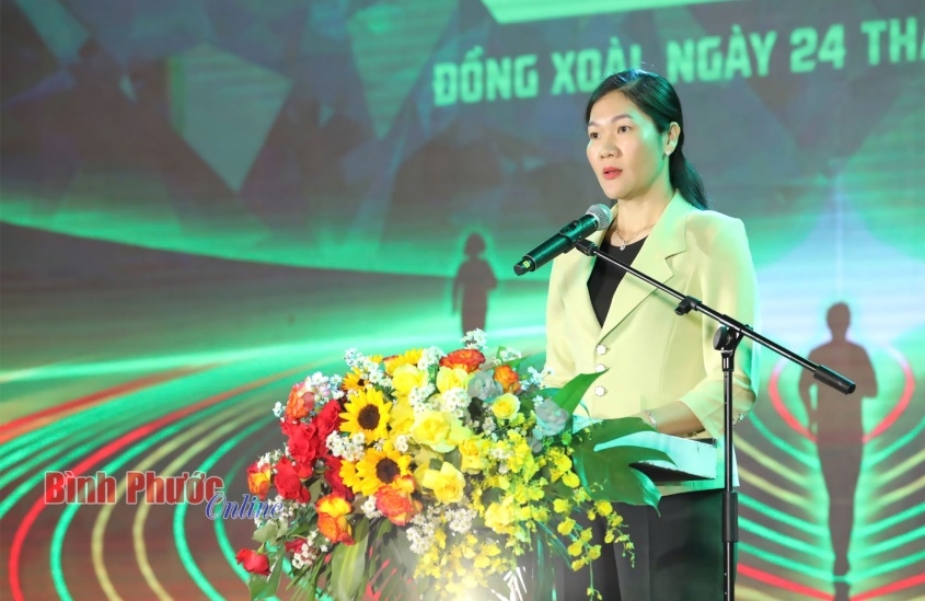 | Phó Chủ tịch UBND thành phố Đồng Xoài Dương Thị Thảo phát biểu chào mừng giải |