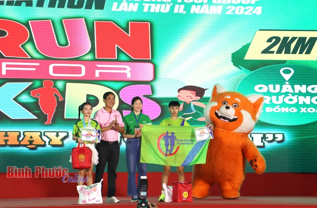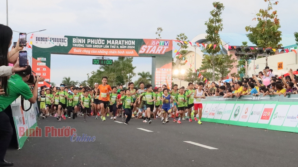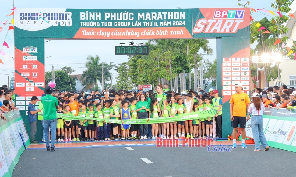 Đây là lần đầu tiên Giải Bình Phước marathon - Trường Tươi Group có nội dung dành cho VĐV từ 5-14 tuổi. Giải thu hút gần 2.000 VĐV nhí đăng ký và tham gia chạy đồng hành, cùng với nhiều ngàn cổ động viên, phụ huynh, thầy cô giáo cổ vũ nhiệt tình.