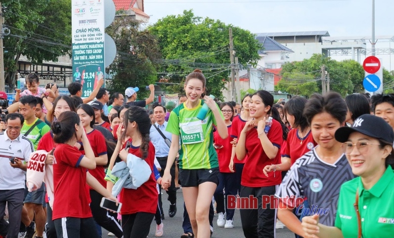 Cùng các VĐV, cộng đồng chạy bộ và các tầng lớp nhân dân, Ủy viên Dự khuyết Ban Chấp hành Trung ương Đảng, Bí thư Tỉnh ủy Bình Phước Tôn Ngọc Hạnh; Ủy viên Ban Thường vụ Tỉnh ủy, Phó Chủ tịch UBND tỉnh Trần Tuyết Minh; Ủy viên Ban Thường vụ Tỉnh ủy, Chủ tịch UBMTTQVN tỉnh Hà Anh Dũng; ông Phạm Hương Sơn, Chủ tịch Hội đồng quản trị, Tổng Giám đốc Tập đoàn Trường Tươi; cùng lãnh đạo các sở, ngành, thành phố Đồng Xoài và các đơn vị, doanh nghiệp, nhà tài trợ… tham gia chạy và chạy hưởng ứng cự ly 5km, càng làm cho không khí giải chạy sôi động, hào hứng hơn.