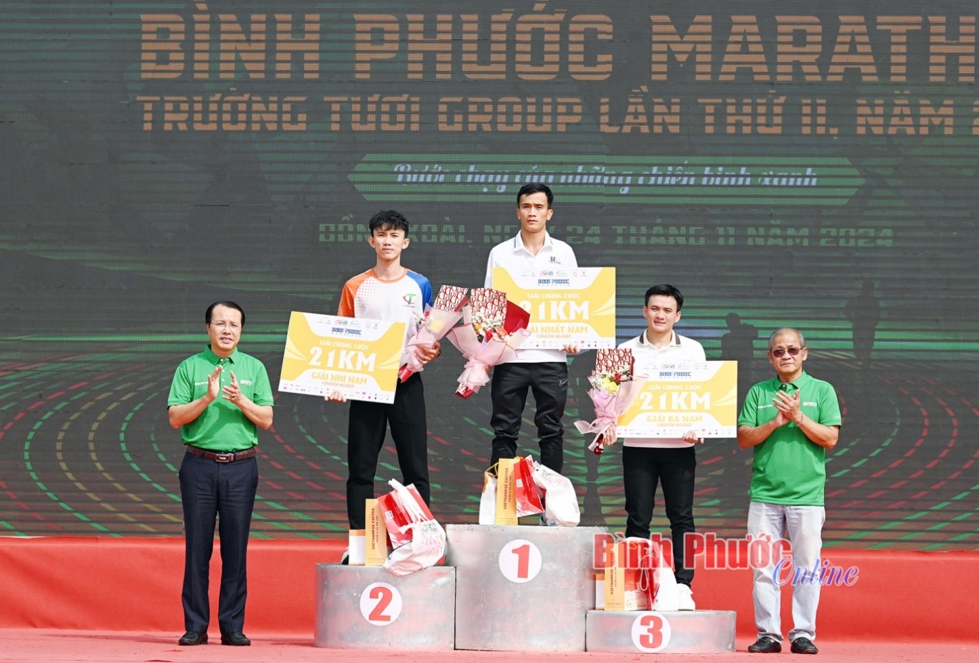 | Đại sứ giải “Ông hoàng marathon Việt Nam” Hoàng Nguyên Thanh về nhất dự ly 42km nam hệ chuyên nghiệp với thời gian 2 giờ 33 phút 19 giây và anh cũng là người đã phá kỷ lục của chính mình ở Giải Bình Phước marathon - Trường Tươi Group, ít hơn mùa giải năm 2023 là 25 giây |