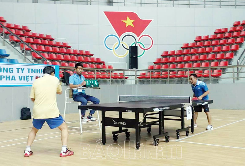 Một trận thi đấu tại Giải bóng bàn các CLB tỉnh Hà Nam lần thứ X, năm 2023 Cúp Sơn Luxsen.