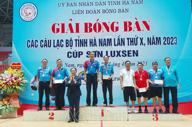 Ban Tổ chức trao Giải cho các đội đoạt giải tại Giải bóng bàn các CLB tỉnh Hà Nam lần thứ X, năm 2023 Cúp Sơn Luxsen.