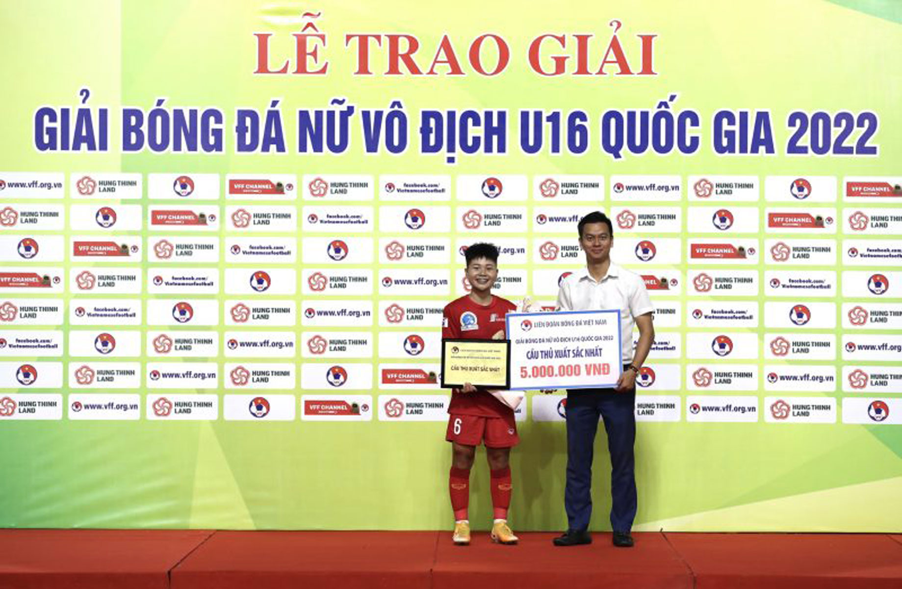 Cầu thủ Vũ Thị Hoa giành danh hiệu cầu thủ xuất sắc nhất giải U16 vô địch quóc gia 2022.