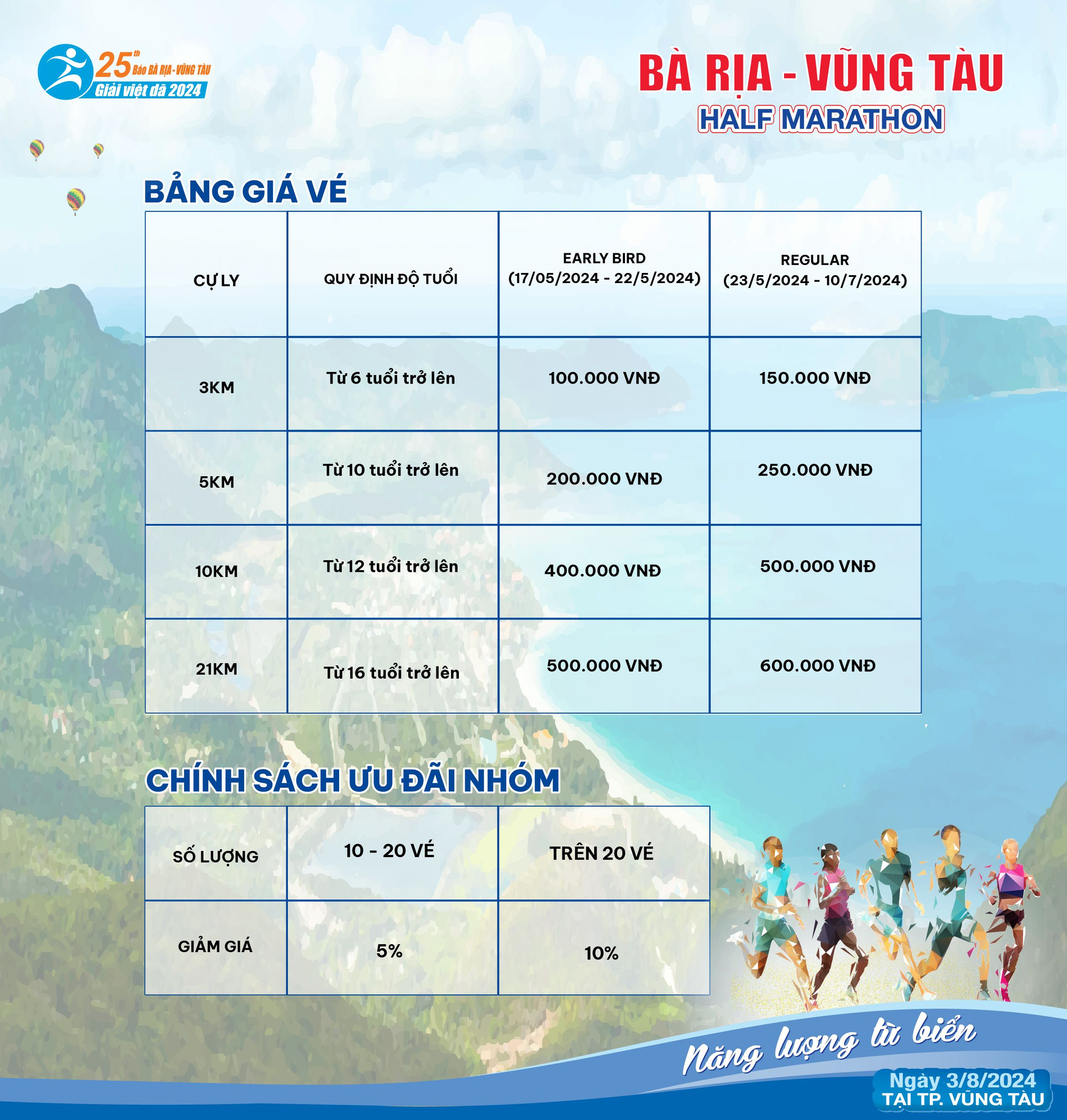 Với tổng giải thưởng lên đến gần 400 triệu đồng, Ban Tổ chức Giải Việt dã Báo Bà Rịa - Vũng Tàu lần thứ 25 năm 2024 hân hoan chào đón các runner trên mọi miền Tổ quốc về dự Giải ở các cự ly 3km, 5km, 10km và 21km.