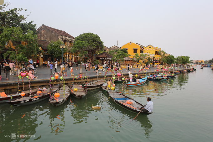 Trong tháng 4, du khách đến Hội An tham quan nhộn nhịp. Ảnh: Đắc Thành