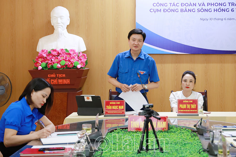 Đồng chí Bí thư Tỉnh đoàn Hà Nam Trần Ngọc Nam phát biểu ý kiến tại hội nghị.