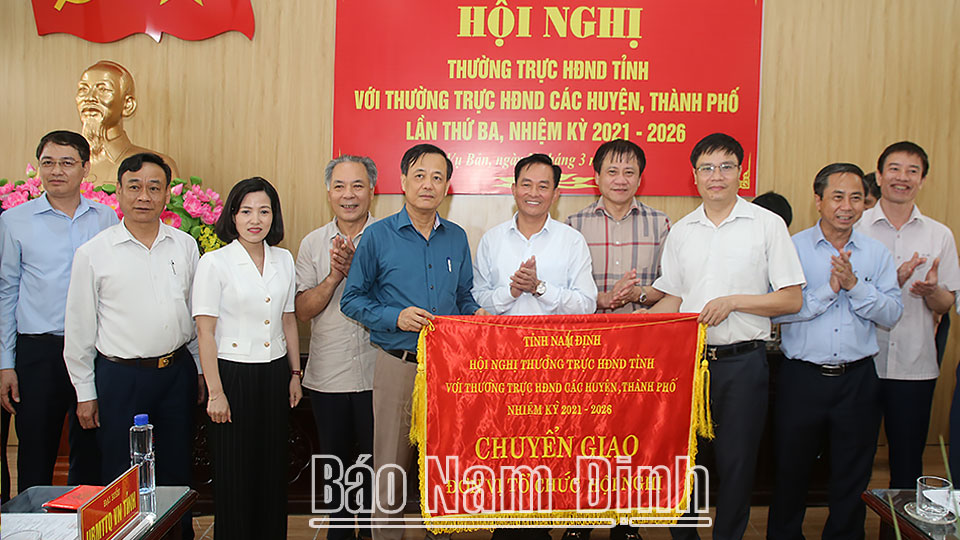 Chiều 22-3, tại huyện Vụ Bản, Thường trực HĐND tỉnh tổ chức hội nghị giao ban với Thường trực HĐND các huyện, thành phố lần thứ ba, nhiệm kỳ 2021-2026. Các đồng chí: Nguyễn Phùng Hoan, Ủy viên Ban TVTU, Phó Chủ tịch Thường trực HĐND tỉnh; Mai Thanh Long, TUV, Phó Chủ tịch HĐND tỉnh dự, chủ trì hội nghị. Cùng dự có lãnh đạo Ủy ban MTTQ tỉnh, các Ban HĐND tỉnh, Văn phòng Đoàn ĐBQH và HĐND tỉnh và Thường trực HĐND các huyện, thành phố.