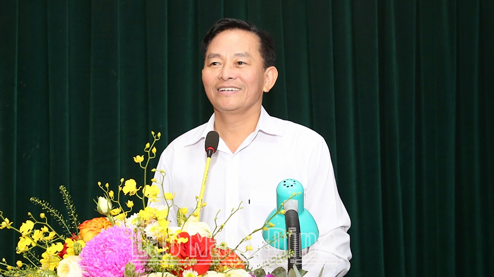 | Đồng chí Phó Chủ tịch Thường trực HĐND tỉnh Nguyễn Phùng Hoan phát biểu tại hội nghị. |