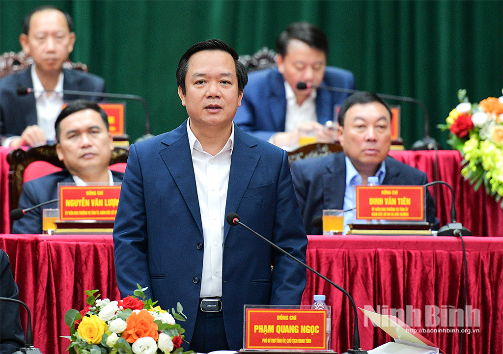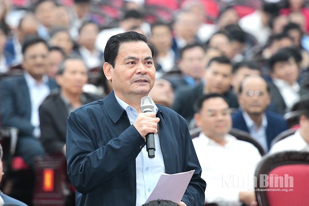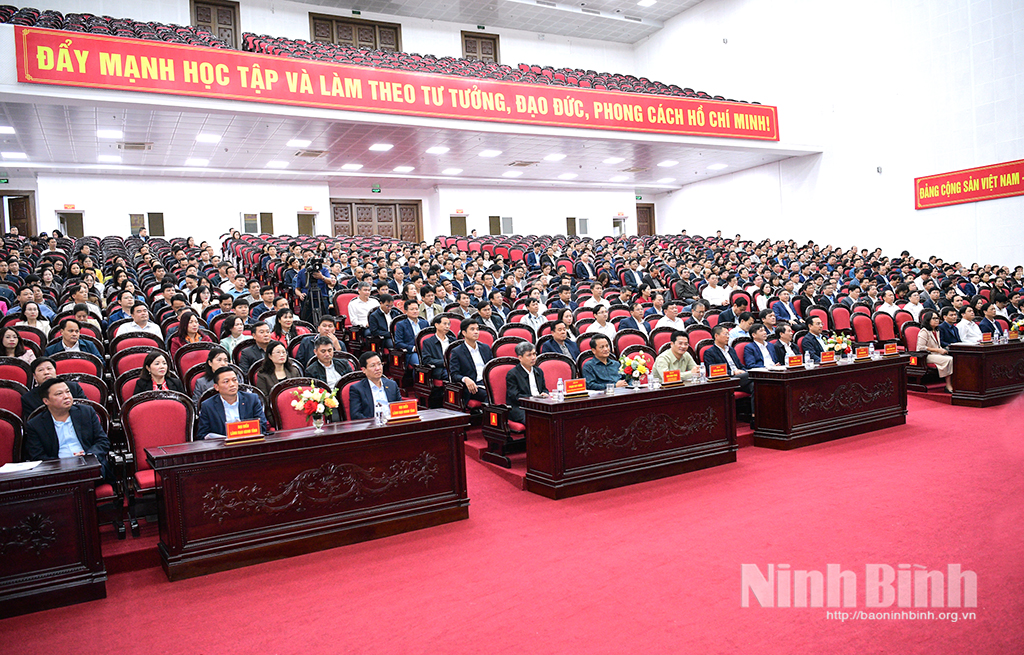 Đồng chí Bí thư Tỉnh ủy cũng đề nghị, trong bối cảnh mới, không gian mới và bộ máy mới, Đảng bộ, Chính quyền và Nhân dân trong tỉnh cần tiếp tục đổi mới toàn diện phương thức lãnh đạo, chỉ đạo và tổ chức thực hiện, phát huy tinh thần trách nhiệm, đoàn kết, thống nhất, quyết tâm xây dựng tỉnh Ninh Bình phát triển nhanh, bền vững, toàn diện.