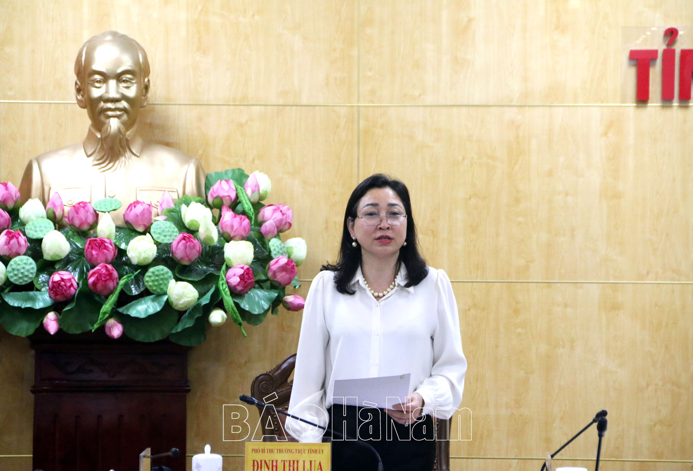 Phát biểu kết luận hội nghị, đồng chí Phó Bí thư Thường trực Tỉnh ủy Đinh Thị Lụa đề nghị: Căn cứ, chức năng, nhiệm vụ được giao, các cơ quan chuyên trách tham mưu, giúp việc Tỉnh ủy tiếp tục tham mưu BTV Tỉnh ủy, BCH Đảng bộ tỉnh lãnh đạo, chỉ đạo thực hiện hiệu quả Nghị quyết của Tỉnh ủy về công tác xây dựng Đảng từ năm 2024 đến hết nhiệm kỳ Đại hội Đảng bộ tỉnh lần thứ XX; chương trình công tác năm 2025 của Thường trực Tỉnh ủy, BTV Tỉnh ủy, BCH Đảng bộ tỉnh; chương trình công tác, chương trình kiểm tra, giám sát, chương trình công tác nội chính, cải cách tư pháp và phòng, chống tham nhũng, lãng phí, tiêu cực năm 2025.