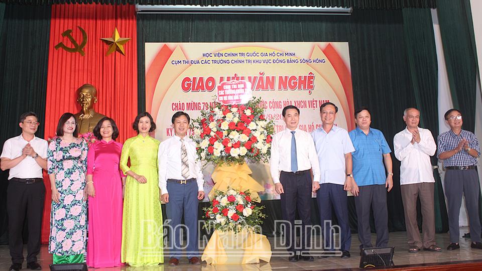 Ngày 30/8, tại Trường Chính trị Trường Chinh (thành phố Nam Định), Cụm thi đua các Trường Chính trị khu vực Đồng bằng sông Hồng đã tổ chức chương trình giao lưu văn nghệ chào mừng 79 năm Quốc khánh nước Cộng hòa xã hội chủ nghĩa Việt Nam (2/9/1945 - 2/9/2024) và kỉ niệm 75 năm thành lập Học viện Chính trị quốc gia Hồ Chí Minh (9/1949 - 9/2024). Dự chương trình có lãnh đạo Vụ các trường Chính trị (Học viện Chính trị quốc gia Hồ Chí Minh); lãnh đạo các trường Chính trị khu vực Đồng bằng sông Hồng.
