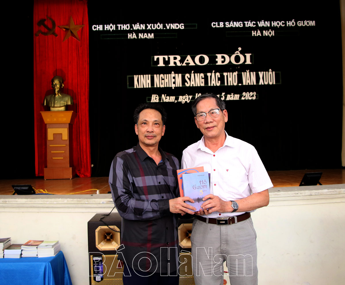 Sáng 16/5, Hội Văn học Nghệ thuật (VHNT) Hà Nam đã tổ chức Gặp mặt, trao đổi, giao lưu, tọa đàm về thơ, văn xuôi giữa các hội viên Văn xuôi, Thơ, Văn nghệ dân gian của Hội VHNT với Câu lạc bộ sáng tác văn học Hồ Gươm (trực thuộc Trung tâm Văn hóa Hà Nội).