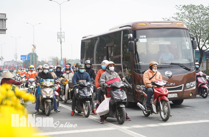 Sau khi chính thức được nghỉ Tết từ ngày 9/2 (tức ngày 28 Tết), hôm nay ngày 10/2, nhiều người ở khắp các tỉnh thành phía Bắc như: Thái Bình, Nam Định, Ninh Bình, Thanh Hoá… đang làm việc và sinh sống ở Hà Nội trở về quê, đi qua địa phận tỉnh Hà Nam, khiến lưu lượng các phương tiện giao thông tăng đáng kể. Tuy nhiên, đã không có tình trạng tắc nghẽn giao thông xảy ra tại địa phương, giúp người dân lưu thông thuận lợi.