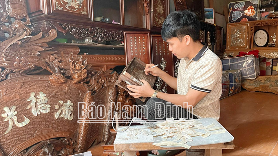 Khác với nhiều thanh niên trong thôn La Xuyên, xã Yên Ninh (Ý Yên), anh Ninh Văn Nguyên không chọn nghề mộc để lập nghiệp mà rẽ hướng sang làm khảm trai, ốc. Anh chia sẻ “Đối với tôi, những dải hoa, phong cảnh quê hương, con người… khi được khảm xong trở nên lung linh, sống động, “có hồn” hơn. Tôi cảm nhận được sự tài hoa, cái tâm, cái tình của người thợ gửi gắm vào mỗi “tác phẩm” khảm, vì vậy quyết gắn bó với nghề này”.