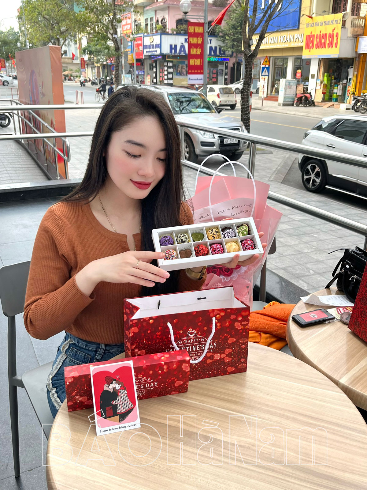 Bạn Hoàng Việt (23 tuổi, phường Lam Hạ, Phủ Lý) mọi năm bán nhiều mặt hàng nhưng năm nay bạn chỉ tập trung vào bán socola.