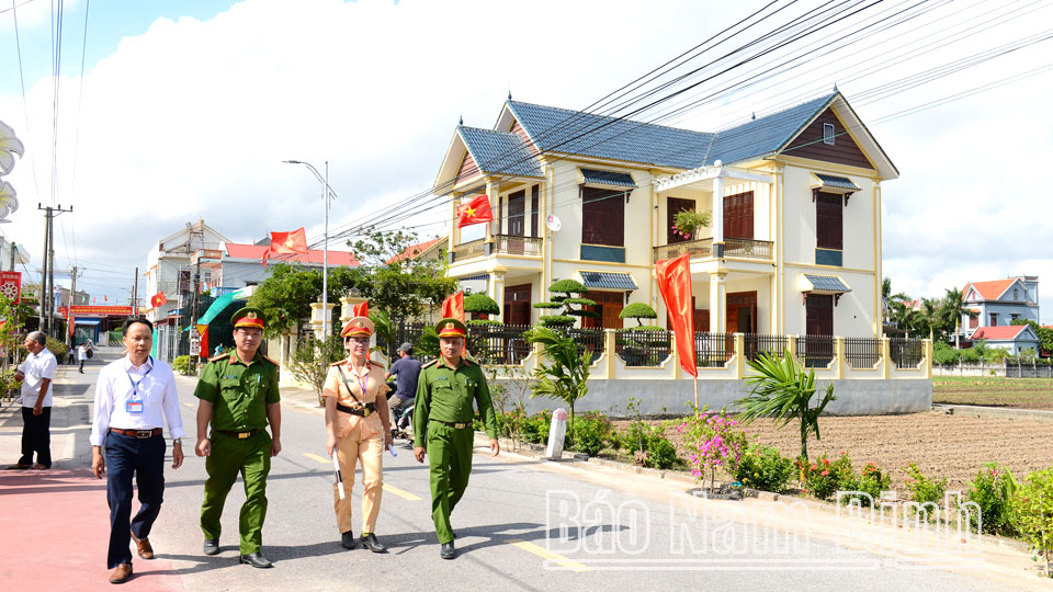 | Các lực lượng Công an huyện Giao Thủy phối hợp tuần tra tại địa bàn xã Giao Phong. |