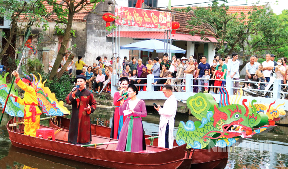 Trong đó, phần lễ nổi bật với các nghi thức dâng hương, rước kiệu, rước nước, tế cá; phần hội cuốn hút bằng những trò chơi dân gian như đánh cờ người, leo cầu ngô, bắt vịt, kéo lửa thổi cơm thi, cùng các loại hình nghệ thuật truyền thống như hát chèo, múa rối nước, rối đầu gỗ. Mỗi lễ hội được tổ chức hằng năm là dịp để cộng đồng khẳng định bản sắc, quảng bá văn hóa quê hương đến bạn bè gần xa.
