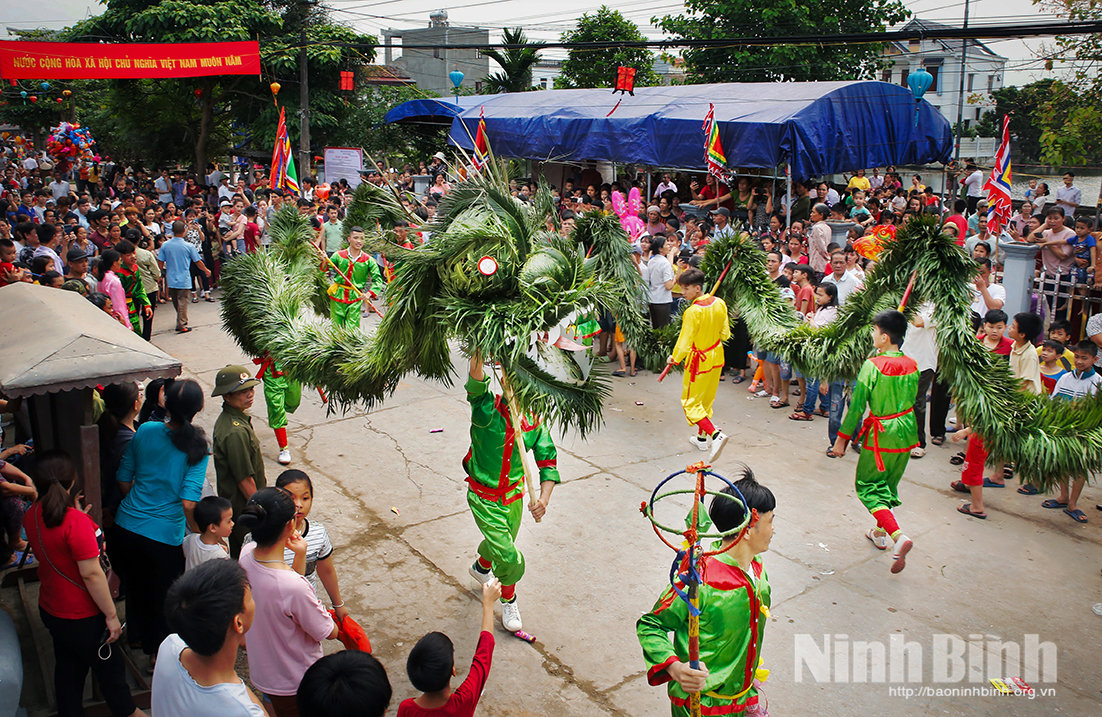 Biểu diễn rồng mây trong lễ hội truyền thống Quả Linh, phường Trường Thi. Ảnh: Viết Dư