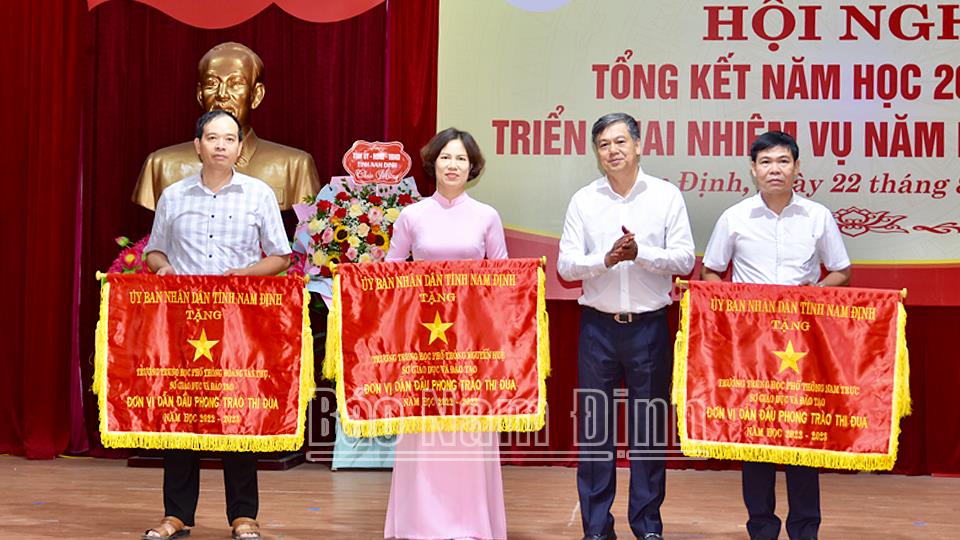 Tại hội nghị, đồng chí Phó Chủ tịch UBND tỉnh Trần Lê Đoài tặng lẵng hoa tươi thắm chúc mừng những thành tích của ngành GD và ĐT; trao thưởng cho các đơn vị tiêu biểu của ngành GD và ĐT đạt thành tích xuất sắc trong năm học 2022-2023./.