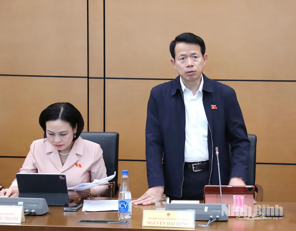 Đại biểu Nguyễn Hải Dũng, Phó Trưởng Đoàn ĐBQH tỉnh Ninh Bình tham gia thảo luận tại Tổ.