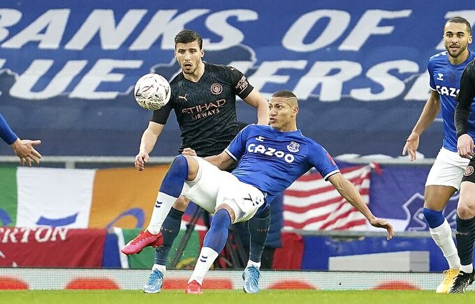 Loại Everton ở tứ kết Cup FA, Man City còn cần 13 chiến thắng nữa để hoàn thành mục tiêu ăn bốn, gồm năm ở Ngoại hạng Anh, hai tại Cup FA, một ở Cup Liên Đoàn, và năm tại Champions League.