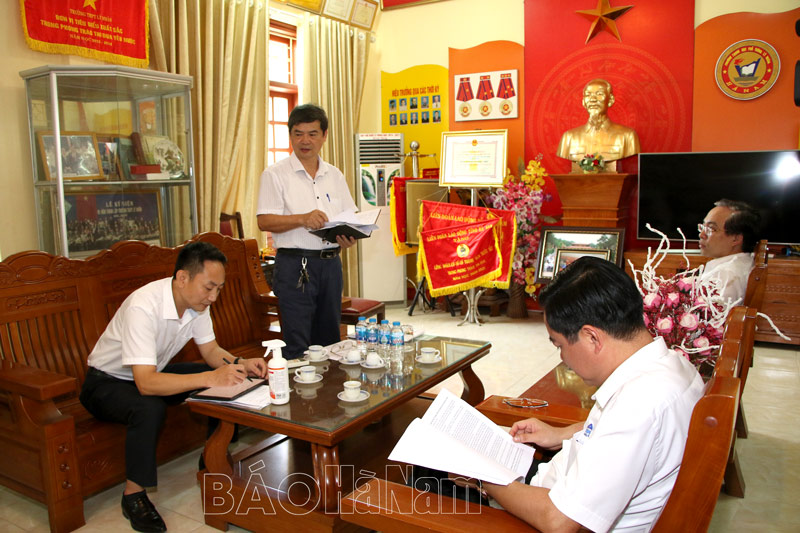 Các đồng chí lãnh đạo tỉnh, huyện Lý Nhân làm việc với Ban Giám hiệu Trường THPT Lý Nhân về công tác chuẩn bị thi Tốt nghiệp THPT quốc gia năm 2022.