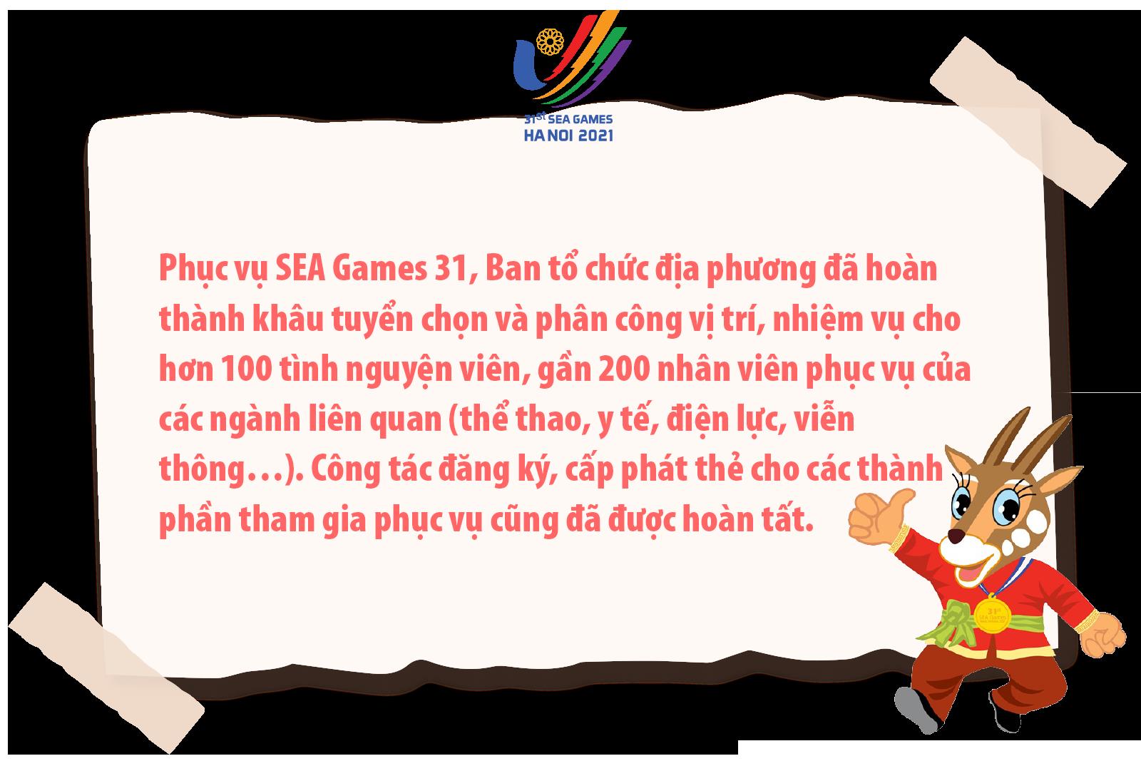 Ông Tạ Đình Quyền: Công tác tổ chức một giải thể thao lớn như SEA Games có rất nhiều việc. Ngoài lĩnh vực thuộc ngành Văn hóa chuẩn bị, còn có nhiều vấn đề liên quan đến các ngành, lĩnh vực khác như: vấn đề an ninh của ngành Công an; công tác phòng, chống dịch của ngành Y tế…Tuy nhiên, ngay với ngành Văn hóa, hiện cũng vẫn còn nhiều việc phải làm: Đó là, ngành sẽ tiếp tục tham mưu với tỉnh trong công tác hoàn thiện cơ sở vật chất tại một số phòng chức năng trong nhà thi đấu, nhà tập theo yêu cầu của Ban tổ chức giải Trung ương.