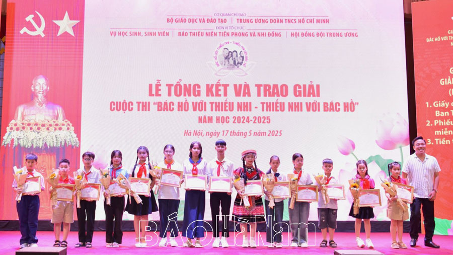 Vừa qua, tại Hà Nội, Trung ương Đoàn, Bộ Giáo dục và Đào tạo, Báo Thiếu niên Tiền phong và Nhi đồng tổ chức Lễ tổng kết và trao giải cuộc thi “Bác Hồ với thiếu nhi - Thiếu nhi với Bác Hồ” năm học 2024 - 2025. Tham dự cuộc thi năm nay, tỉnh Hà Nam có 1 tập thể và 2 học sinh xuất sắc đạt giải.