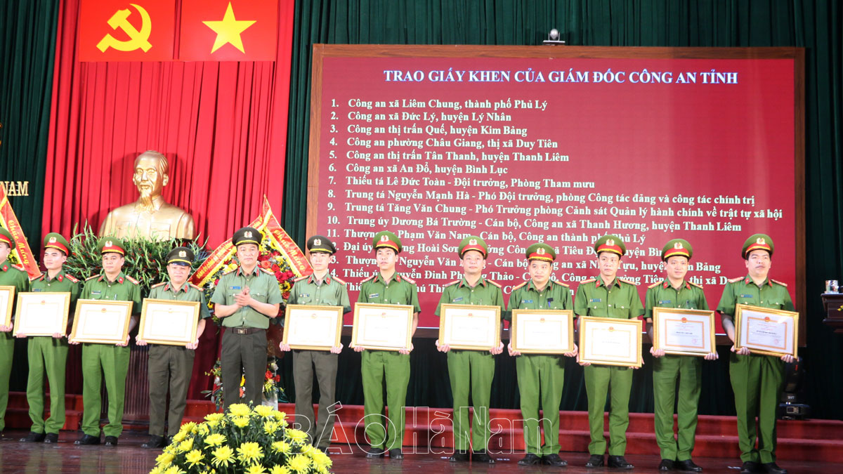 Tại hội nghị, Công an tỉnh Hà Nam đã công bố Thư khen của Đại tướng Tô Lâm, Bộ trưởng Bộ Công an gửi Công an Hà Nam - Đơn vị dẫn đầu toàn quốc cũng là đơn vị cấp tỉnh đầu tiên hoàn thành 100% chỉ tiêu cấp CCCD gắn chíp điện tử cho công dân... nhằm kịp thời biểu dương, khen ngợi sự chỉ đạo quyết liệt, sáng tạo, bản lĩnh của Ban Giám đốc, lãnh đạo, chỉ huy các cấp và sự nỗ lực, cố gắng của cán bộ, chiến sỹ trong hành trình vì nhân dân thực hiện...