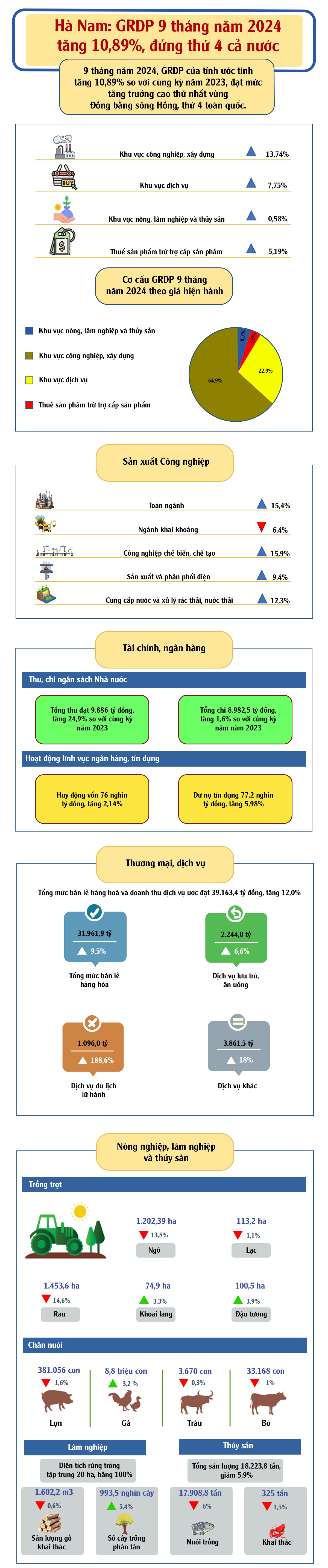 Hà Nam: GRDP 9 tháng năm 2024 tăng 10,89%, đứng thứ 4 cả nước