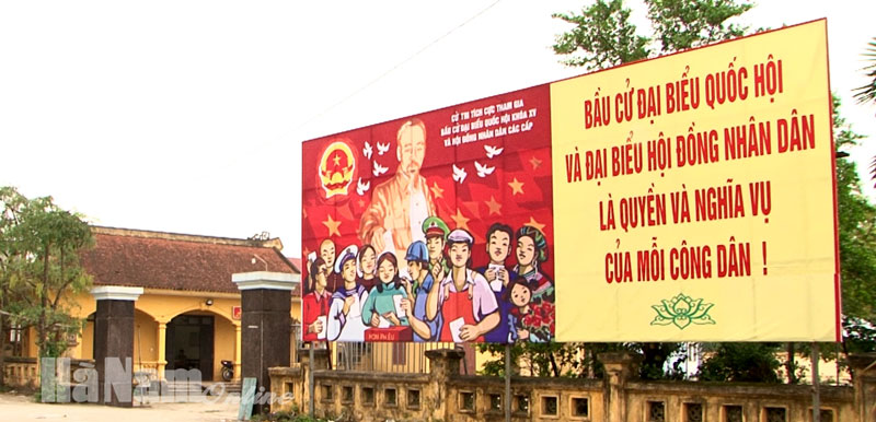 Những cụm pano được dựng lên ở các trục đường lớn các xã của thị xã Duy Tiên từ cuối tháng 3 Lãnh đạo Bộ Chỉ huy quân sự tỉnh kiểm tra công tác chuẩn bị bầu cử tại Ban Chỉ huy Quân sự thị xã Duy Tiên