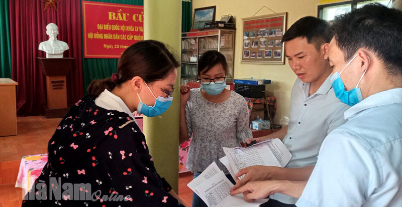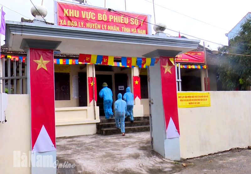 Lãnh đạo các xã đang bị cách ly xã hội xuống các địa bàn dân cư khu vực phong tỏa kiểm tra công tác chuẩn bị bầu cửKhu vực bỏ phiếu số 7 xã Đạo Lý, huyện Lý Nhân