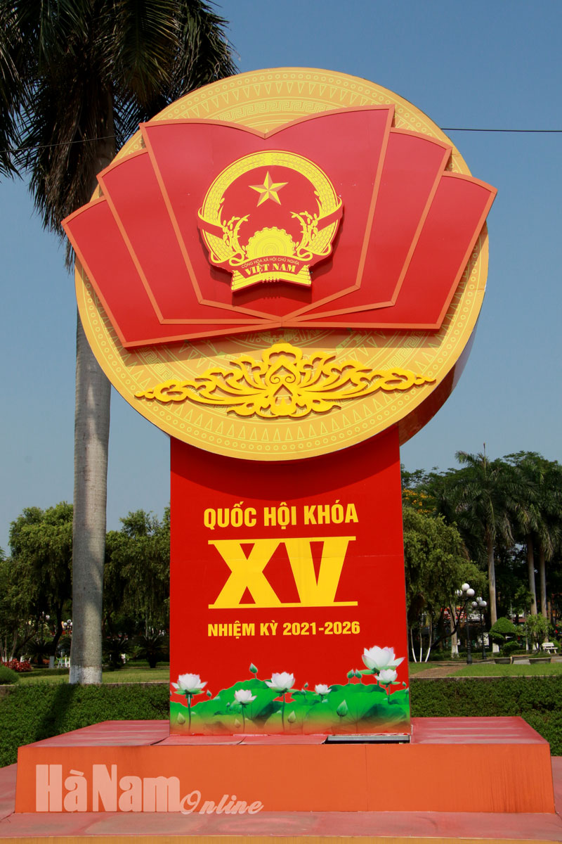 Thành phố Phủ Lý – trung tâm chính trị, kinh tế, văn hóa của tỉnh khác hắn ngày thường. Những con đường rợp cờ hoa, lộng lẫy sắc màu tạo cảm giác náo nức cho nhân dân trước ngày bầu cử.