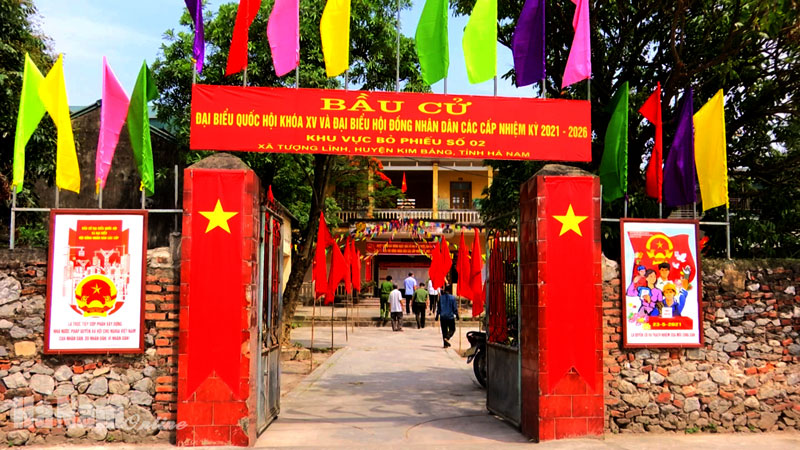 Trước cửa trụ sở Huyện ủy, HĐND, UBND huyện Kim BảngKhu vực bỏ phiếu số 2, xã Tượng Lĩnh, huyện Kim Bảng