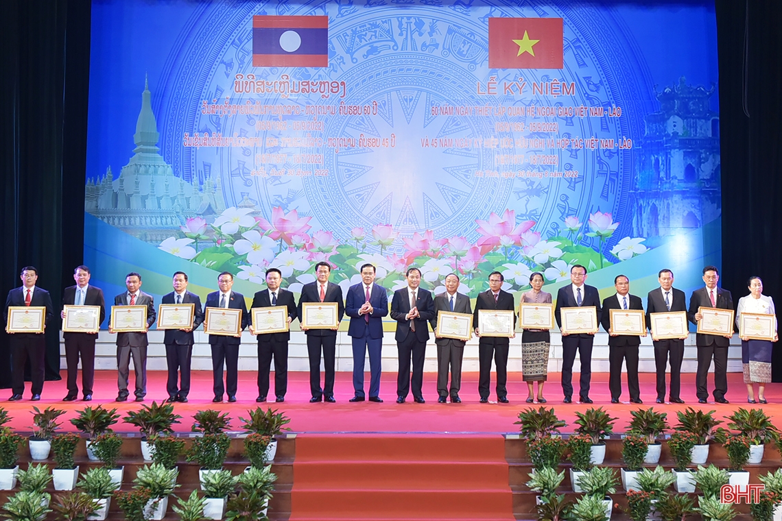 Nhân dịp này, UBND tỉnh Hà Tĩnh đã trao bằng khen cho 25 tập thể và 50 cá nhân thuộc tỉnh Bolikhămxay và Khăm Muồn (nước CHDCND Lào) đã có thành tích xuất sắc trong gìn giữ, vun đắp tình đoàn kết hữu nghị truyền thống đặc biệt và hợp tác toàn diện giữa 2 nước Việt Nam – Lào nói chung, tỉnh Hà Tĩnh với các tỉnh Bolikhămxay và Khăm Muồn nói riêng.