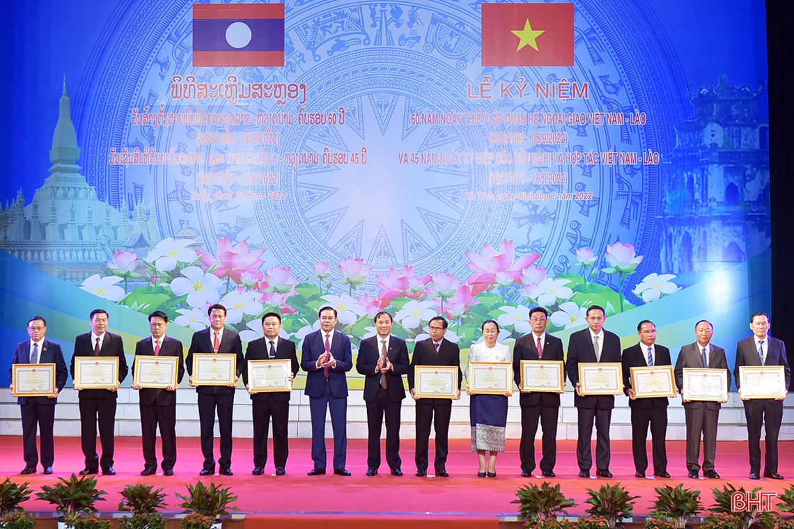 Nhân dịp này, UBND tỉnh Hà Tĩnh đã trao bằng khen cho 25 tập thể và 50 cá nhân thuộc tỉnh Bolikhămxay và Khăm Muồn (nước CHDCND Lào) đã có thành tích xuất sắc trong gìn giữ, vun đắp tình đoàn kết hữu nghị truyền thống đặc biệt và hợp tác toàn diện giữa 2 nước Việt Nam – Lào nói chung, tỉnh Hà Tĩnh với các tỉnh Bolikhămxay và Khăm Muồn nói riêng.