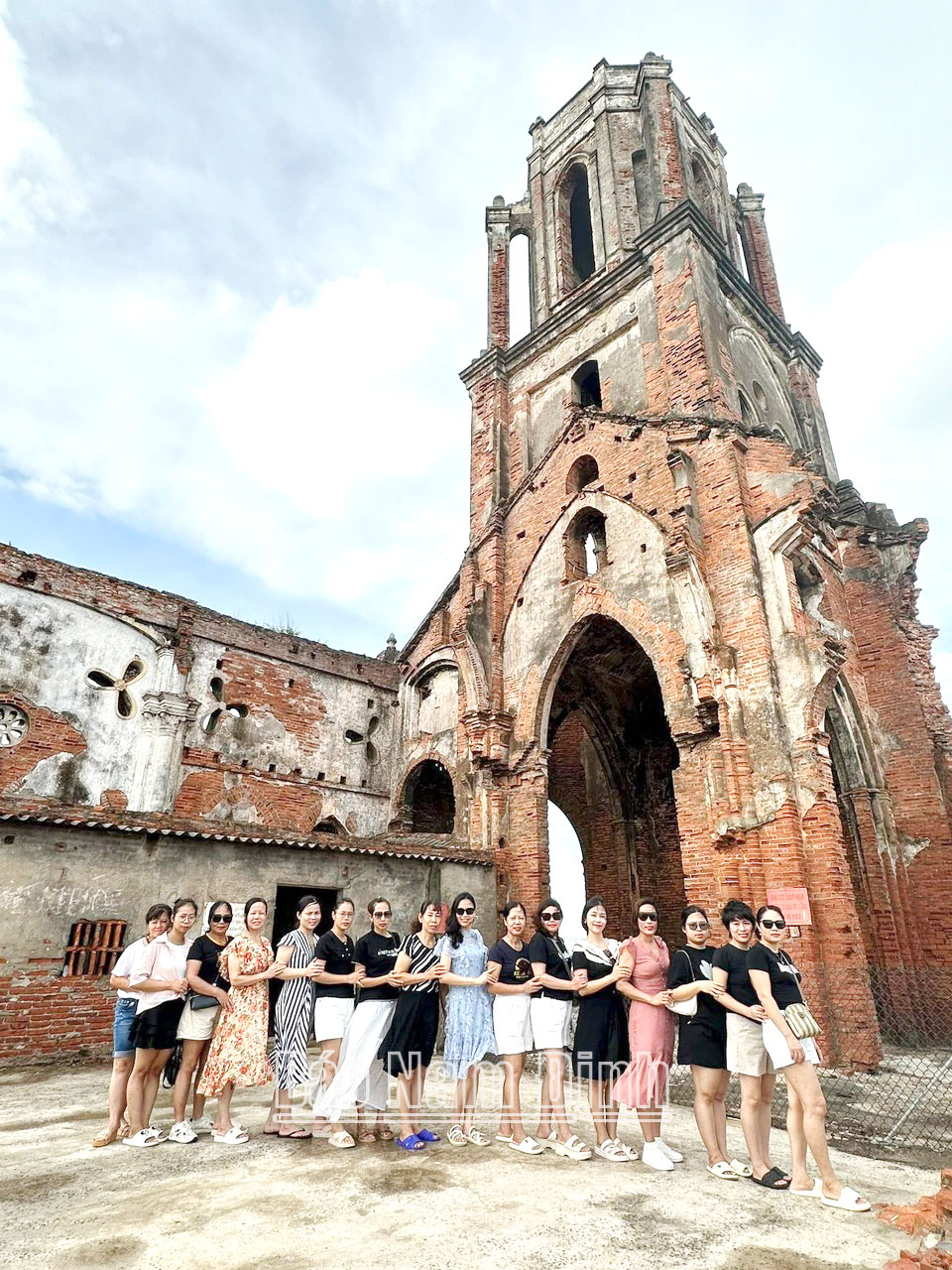 | Du khách tham quan di tích “Nhà thờ đổ” xã Hải Lý. |