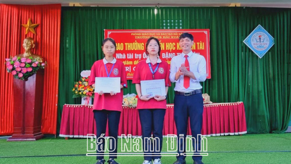 | Trường THCS Hải Châu (Hải Hậu) trao phần thưởng cho các em học sinh có thành tích cao trong học tập |